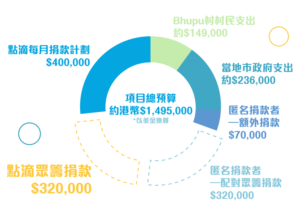 引流供水系統比過往的水項目規模大,成本亦相對較高。因此,我們希望集結多方面的力量完成整個水項目。我們相信每一點小水滴能夠匯滴成川,而縱是再微小的力量,集合起來也能為 Bhupu村的村民帶來希望。